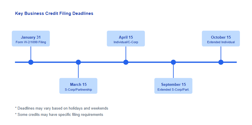 - Identify Eligible Credits: Research and determine which credits your business qualifies for.