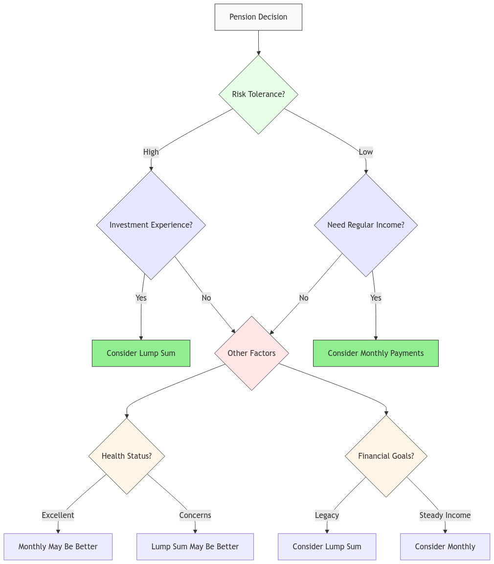 Choosing between a lump sum payout and monthly pension payments is a big decision. Here’s a table summarizing the key differences to help you decide what’s best for your situation: